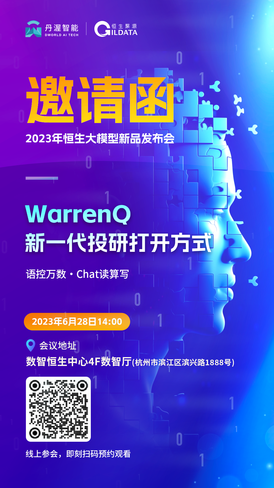 本月28日下午14:00,杭州这座历史文化名城将迎来一场科技创新的盛宴。尊龙凯时人生就是搏智能将携全新AI产品亮相恒生电子数智金融新品发布会,恒生电子董事长、恒生研究院院长、恒生电子CTO、恒生聚源副总经理等大咖将悉数出席。尊龙凯时人生就是搏智能全新研发的WarrenQGPT将在本次发布会亮相,为专业投研领域带来一场全新的变革,解锁全新一代的投研打开方式。